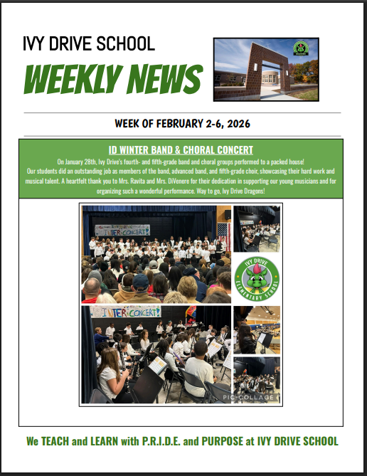Good Morning, Ivy Drive School Community:What an exciting few weeks of teaching and learning we have had at Ivy Drive! Because last week was a shortened week, I did not send a Weekly News—so we hav...