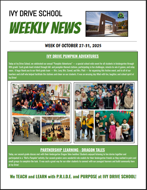 Good Evening, Ivy Drive School Community: We had an amazing week of